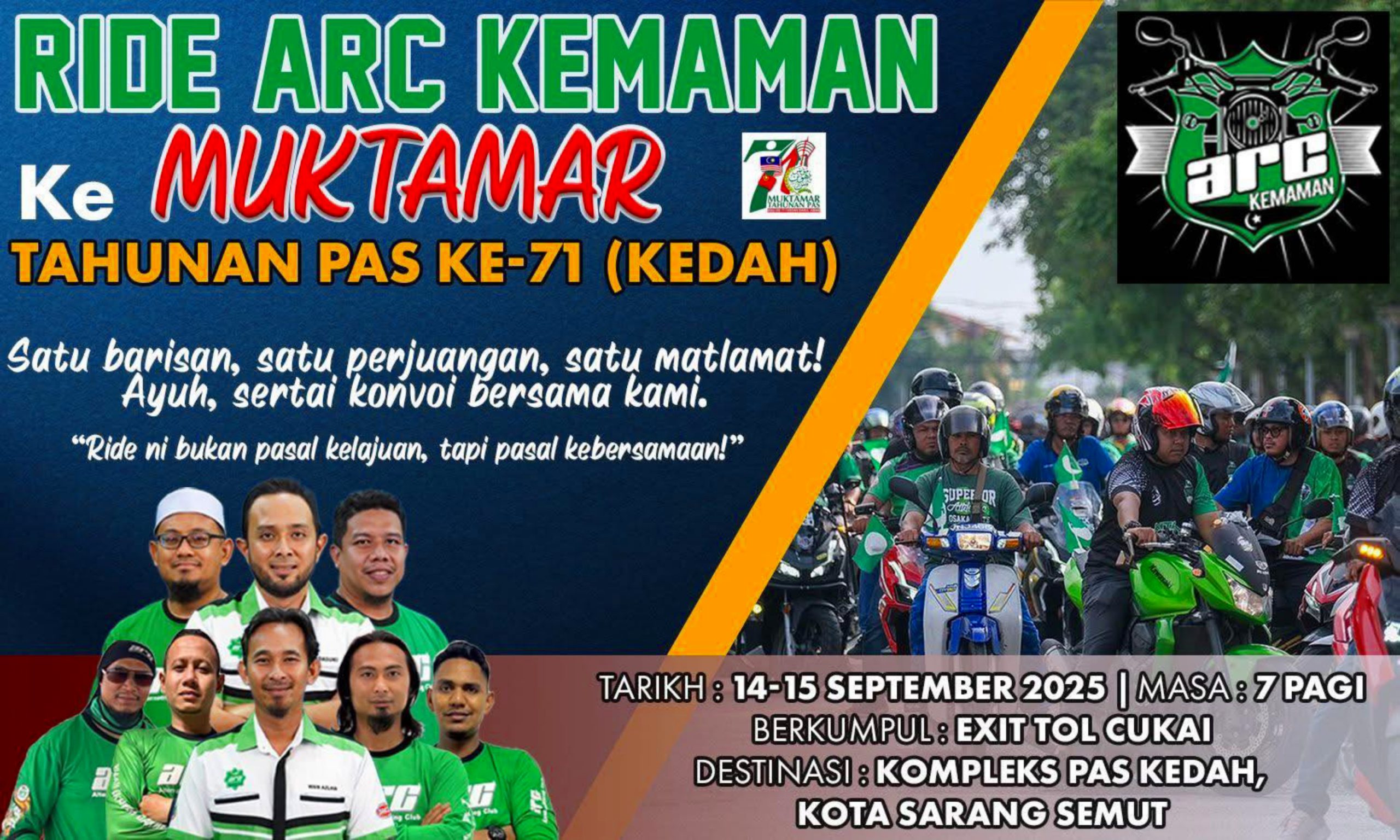 “Peserta diminta berkumpul di Lebuh Raya Pantai Timur ‘Exit’ Tol Chukai” sebelum meneruskan perjalanan ke Kompleks PAS Kedah, Kota Sarang Semut, lokasi Muktamar diadakan.