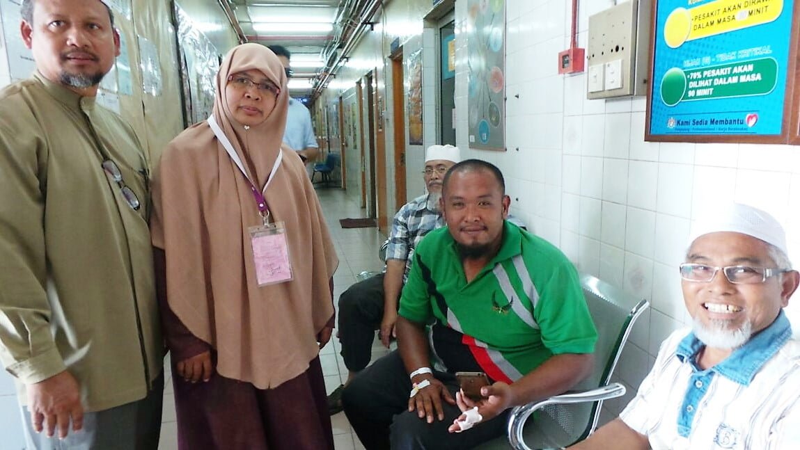 Beliau di kejarkan ke rumah sakit bukan dengan ambulan, tetapi dengan kenderaan Ahli Dewan Undangan Negeri (ADUN) Rantau Abang, Terengganu.
