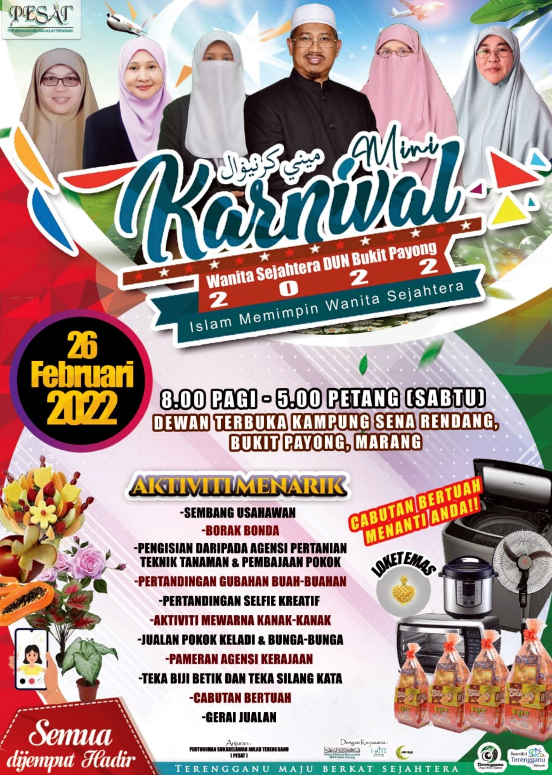 MARANG – Kaum Hawa khususnya golongan wanita muda dalam kawasan Dewan Undangan Negeri (DUN) Bukit Payong diseru hadir beramai-ramai memerahkan Karnival Wanita Sejahtera.