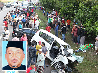 Bekas Ahli Parlimen Dungun, Dato’ Awang Jabar, 66, terbunuh apabila kereta yang dinaikinya bertembung dengan sebuah Perodua Alza di Kilometer 26, Jalan Kuala Terengganu-Kuantan berhampiran Kampung Alor Tuman, Merchang, pagi tadi.