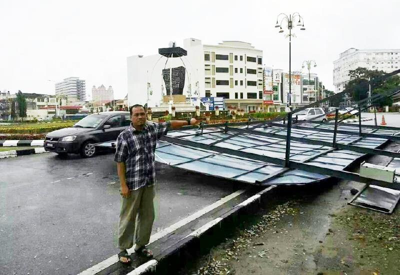Billboard bulatan Ladang dilaporkan runtuh awal pagi hari ini Sabtu, 30 November berikutan hujan lebat dan angin musim tengkujuh.