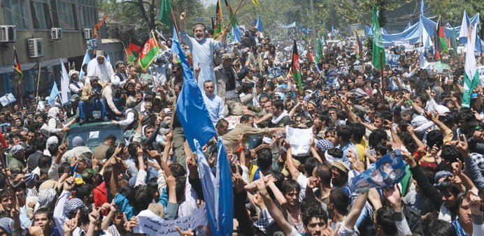 afghan demo1Abdullah menolak keputusan pilihan raya minggu lalu, berkata beliau adalah mangsa penyelewengan dalam keselamatan peti undi pada pengundian 14 Jun lalu, manakala lawannya Ashraf Ghani telah mendakwa menang dengan majoriti lebih daripada satu juta undi.