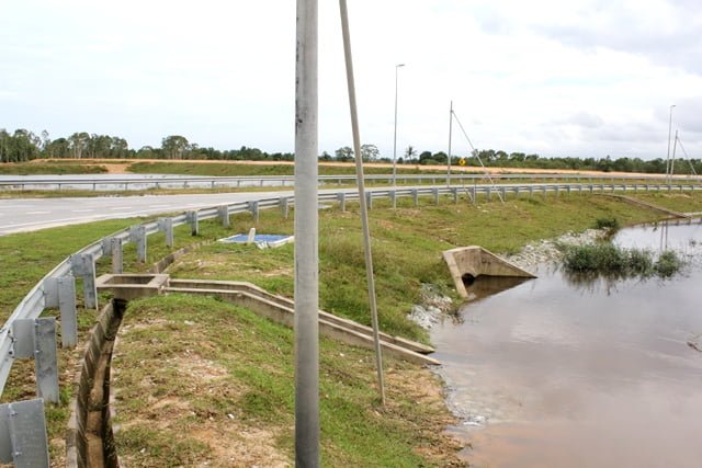 Kita menyedari bahawa laluan air yang sedia ada dalam bentuk calvert atau kalbot mengikut istilah penduduk setempat sangat tidak memadai. Sebab itu kita mencadangkan supaya jalan tersebut dibelah dan dibina jambatan yang tentunya akan melancarkan terus aliran air ke sungai.