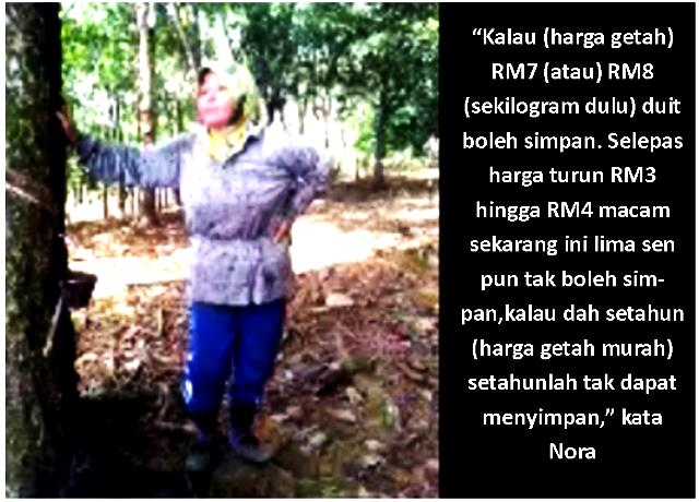 “abihhhh reng………kita dengan boleh ‘pitih’ (pendapatan) le ni (sekarang ni), tak cukup, walaupun seminggu menoreh (boleh) dapat (sehingga) RM2,000,”keluhnya.