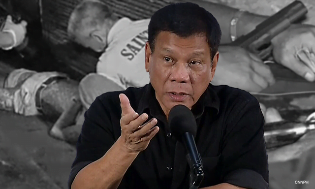 Duterte menegaskan polis hanya membunuh untuk mempertahankan diri dan kematian yang tidak dapat dijelaskan adalah disebabkan oleh kumpulan-kumpulan pengedar dadah berperang antara satu sama lain.