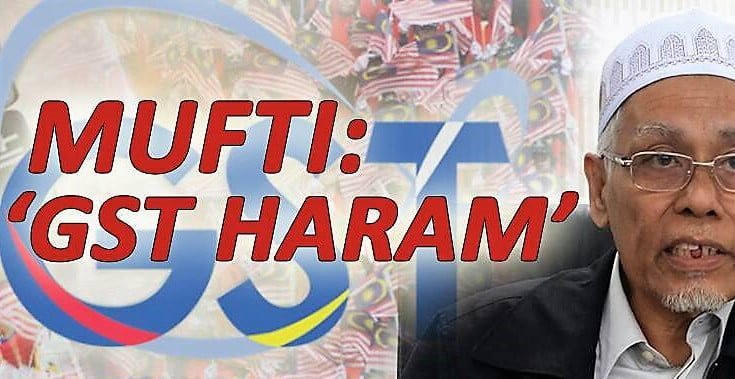16. Dua mufti telah mula bercakap tentang GST yang tidak patuh Syariah ini. Sewajarnya Jawatankuasa Fatwa Kebangsaan kembali bersidang membetulkan kesilapan fatwa sebelum ini dengan memanggil pelbagai pihak di kalangan ilmuwan Islam termasuk PAS bermuzakarah tentang hukum cukai GST.