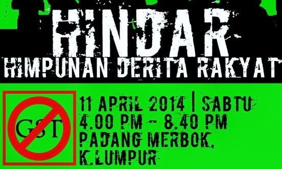 Marilah kita bersama-sama dalam Himpunan Derita Rakyat; Tolak GST di Padang Merbuk jam 4 ptg -8.30 malam hari ini Sabtu 11 April 2015. Moga kehadiran kita beroleh pahala daripadaNya.
