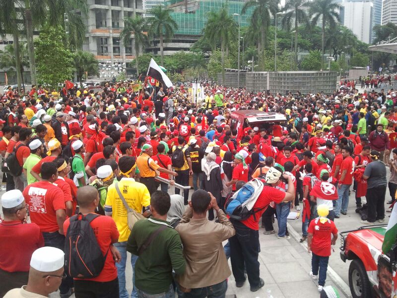 Sudah ada kira-kira 5,000 orang di KLCC yang akan bergerak tidak lama lagi menuju Stadium Merdeka.