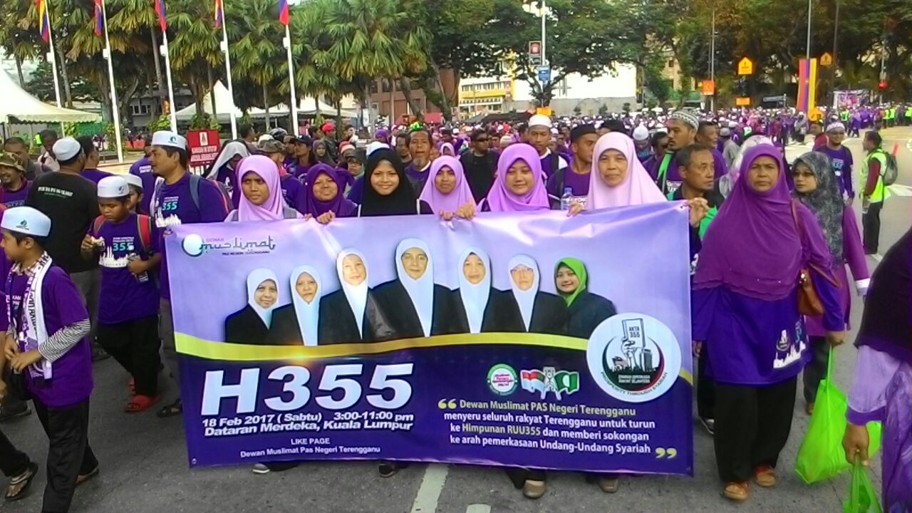“Hari ini kita hadir bersama- sama dalam H355 bagi menyatakan sokongan kita untuk meninggikan dan memartabatkan undang-undang syariah Islam yang ada di Malaysia,