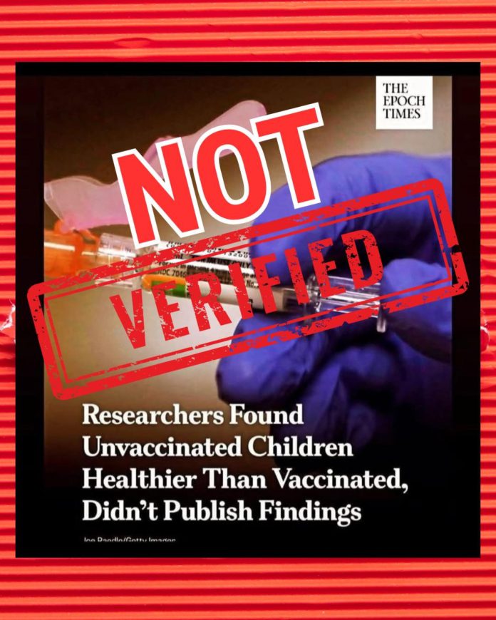 Maklumat daripada The Epoch Times yang menyatakan “kanak-kanak tidak divaksinasi lebih sihat berbanding yang divaksinasi” adalah tidak tepat dan tidak disokong oleh kajian saintifik yang sahih.
