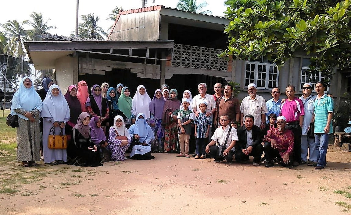 [Gambar; Atas – ahli rombongan bergambar beramai-ramai di hadapan rumah Abang Din, rumah dimana al-Marhum Ustaz Abu Bakar tinggal selama 3 bulan, sewaktu dikejar penguasa Malaysia dengan akta ISA. Bawah; YB Haji Mohd Abdul Wahid menunjukkan bilik yang digunakan oleh al-Marhum Ustaz Abu Bakar ketika tinggal dirumah itu]