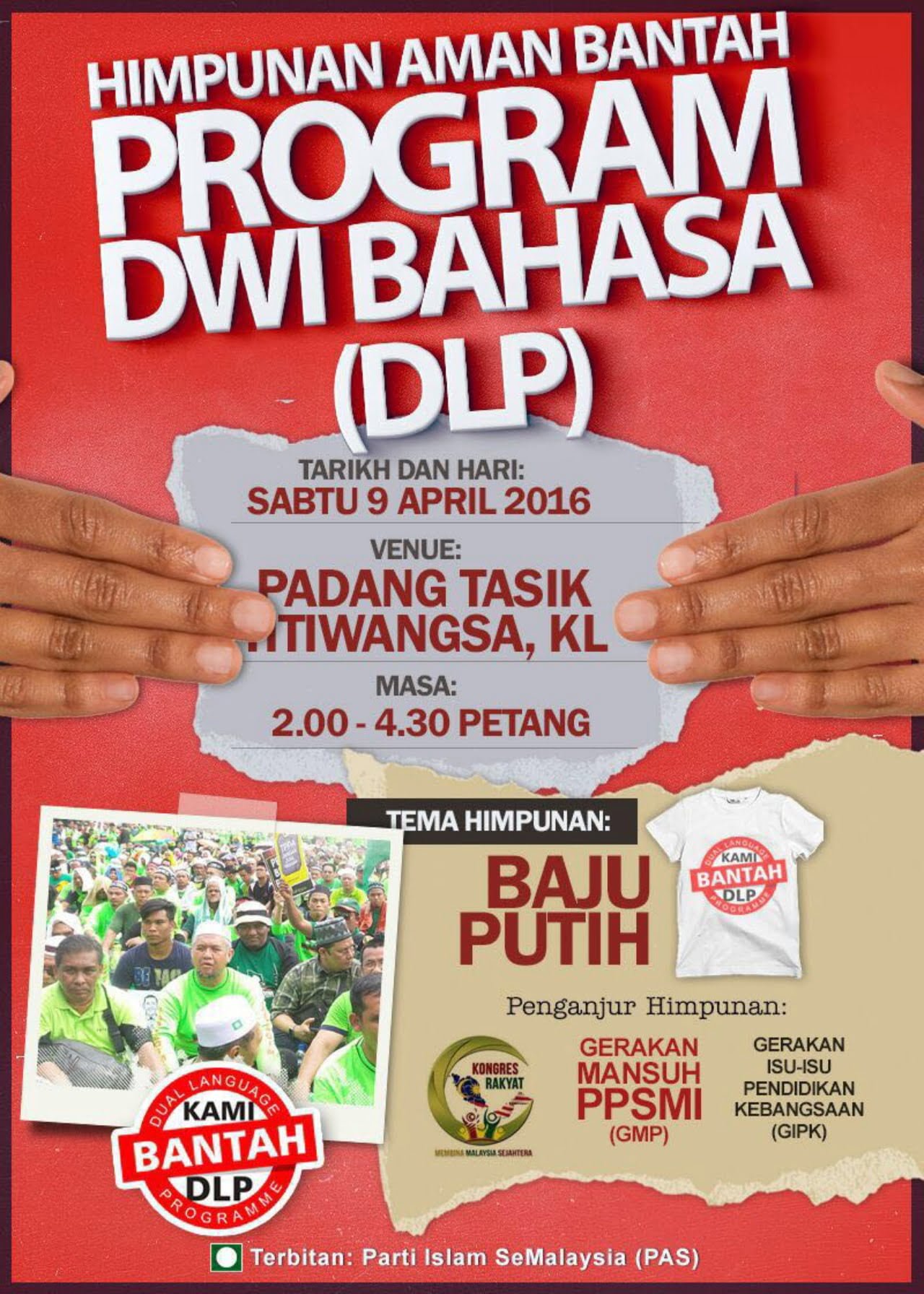 DUPP mengajak seluruh rakyat Malaysia yang prihatin dengan masalah pendidikan negara khususnya warga pendidik dan ibu bapa untuk turut serta dalam Perhimpunan Aman Membantah DLP yang akan diadakan pada hari esok (Sabtu, 9 April 2016) bermula jam 2.00 petang di Taman Tasik Titiwangsa, Kuala Lumpur.
