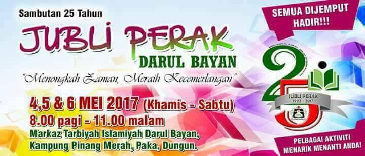 DUNGUN – Institut pendidikan agama tersohor di sini, Darul Bayan akan mengadakan Karnival Sambutan Sempena 25 Tahun Penubuhannya, yang akan berlangsung selama tiga hari bermula 4 Mei depan.