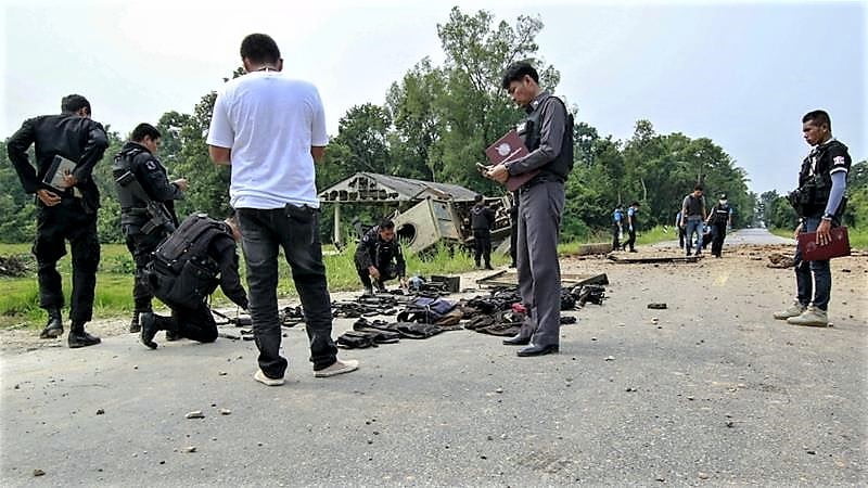Seorang askar dan seorang anggota polis telah terbunuh pada Khamis lalu dan 26 orang cedera oleh ledakan bom tepi jalan, yang diikuti satu sesi baru rundingan di Malaysia antara tentera dan puak pemberontak lain.