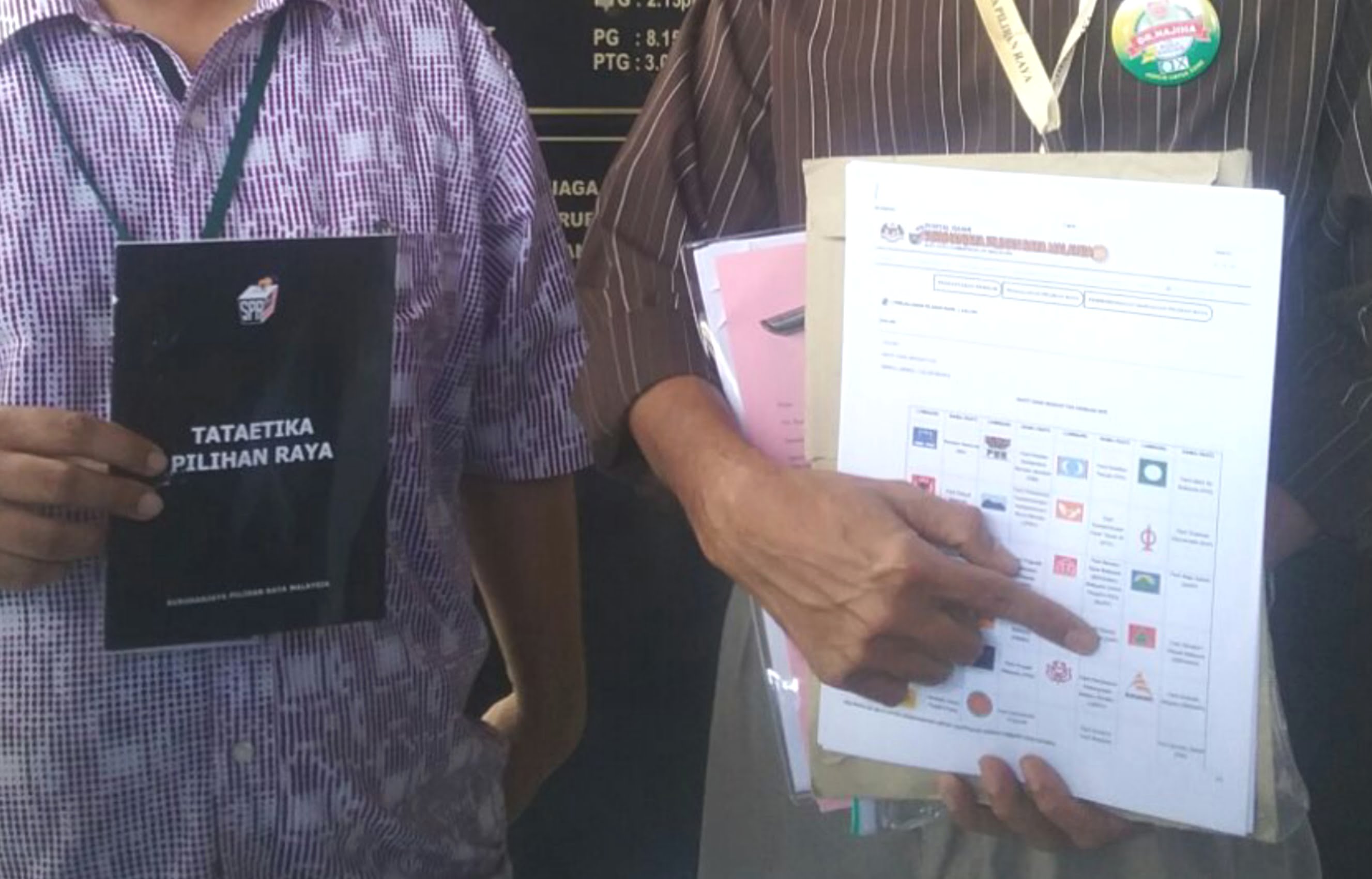 “Jadi pegawai pengurus piliharaya telah merujuk kepada borang 8. Borang 8 ialah berkenan logo yang akan dicetak pada kertas undi.