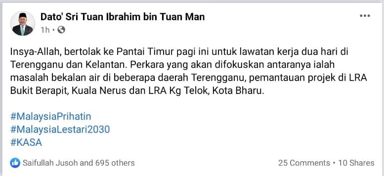 KUALA TERENGGANU – Timbalan Presiden PAS merangkap Menteri Alam Sekitar dan Air Yang Berhormat Ustaz Dato’ Sri Tuan Ibrahim bin Tuan Man akan mengadakan lawatan kerja ke negeri Terengganu pada hari ini, Khamis 2 September.