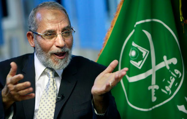 FILE - In this Tuesday, Oct. 26, 2010 file photo, Muslim Brotherhood supreme leader Mohammed Badie talks during an interview with the Associated Press at his office in Cairo Egypt. Egyptian security officials say the Muslim Brotherhood's supreme leader has been arrested in a coastal city and flown to Cairo on a military helicopter. The officials said Mohammed Badie was arrested Wednesday night, July 3, 2013 in a resort village in Marsa Matrouh, a Mediterranean coastal city west of Cairo not far from the Libyan border. (AP Photo/Amr Nabil, File)