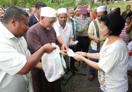 “bagus….bagus……… Tok Guru mar beri bantuan, itu belum jadi kerajaan lagi, kalau jadi kerajaan nanti mesti boleh kasi lebih lagi,”ujarnya spontan.