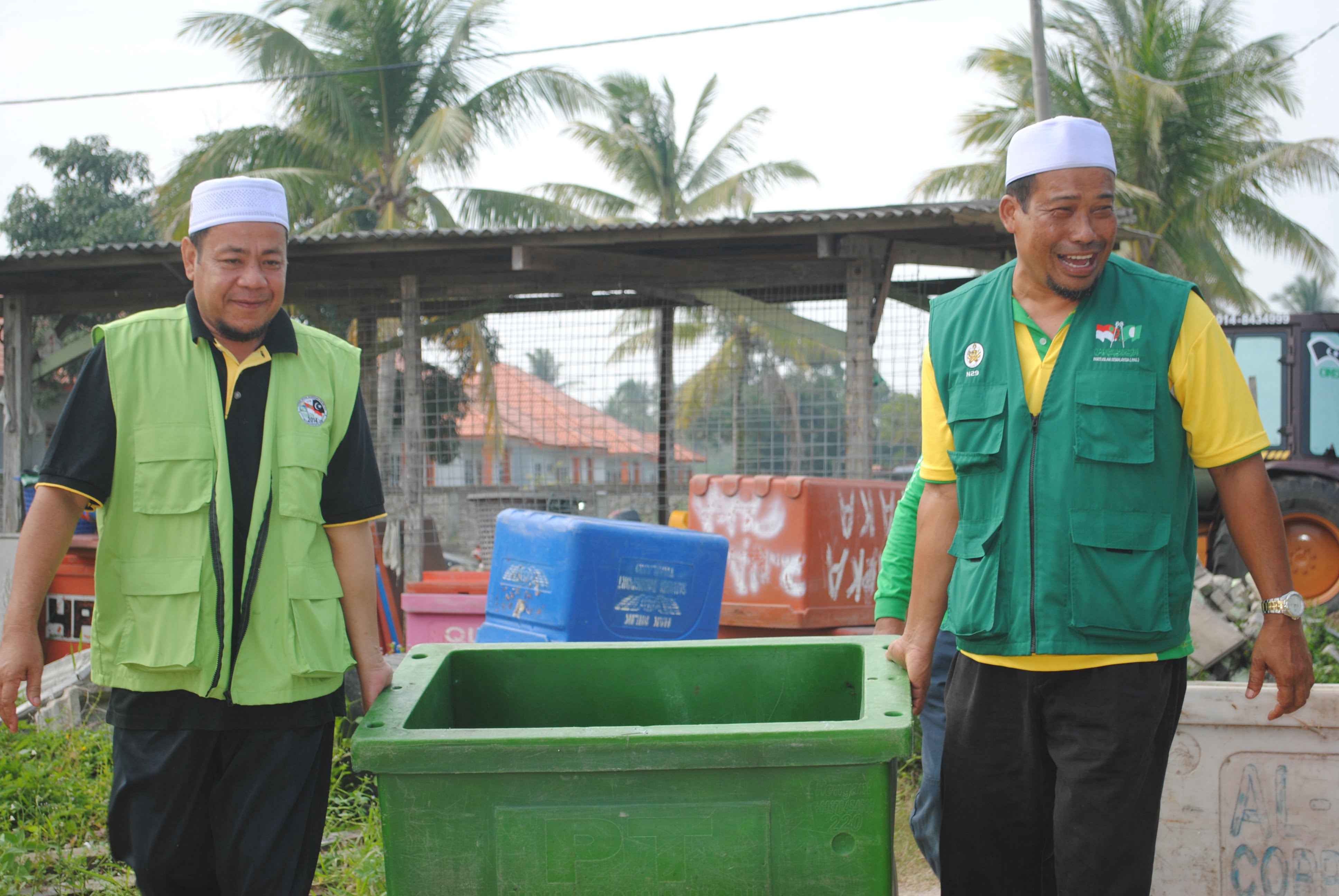 (Gambar paling atas – Ustaz Alias Abdul Hamid (kiri) bersama Pengarah PAS DUN Kemasik, Amri Mamat turun padang dan mengangkat bahan sebuah tong ikan di Surau Hijau, Kampung Baru Kemasik)