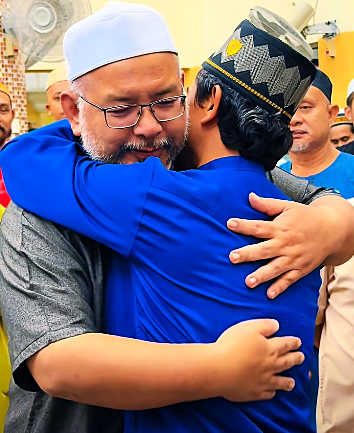 Setiausaha PAS Terengganu Dato’ Ustaz Wan Sukairi, memeluk bapa Allahyarhamah, berkongsi duka seorang ayah