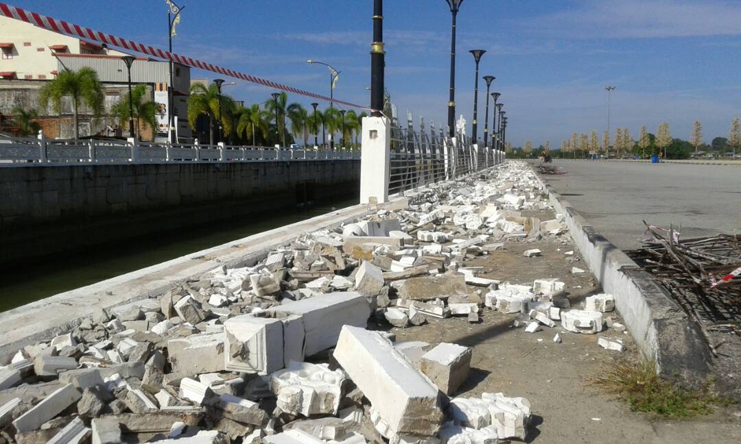 “tidak dipedulikan oleh pihak berkuasa…..sebaliknya pagar sungai buatan itu, yang masih elok, ditukar dengan pagar baharu,