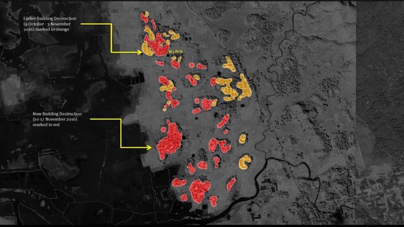 HRW berkata imej satelit baru itu direkodkan pada 18 10, 17 dan 18 November menjadikan jumlah bangunan yang musnah didokumenkan kepada 1,250 buah semuanya.