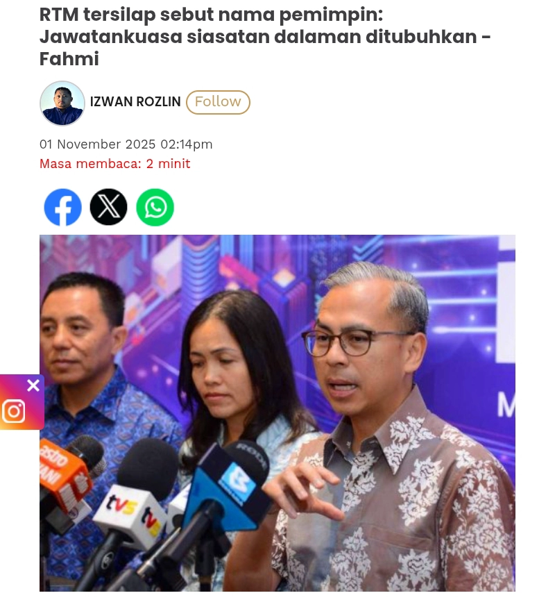 “Ketua Pengarah RTM (Penyiaran) buat jaringan ‘Hat Trick’ (kesilapan) (tiga gal dijaringkan oleh orang sama).