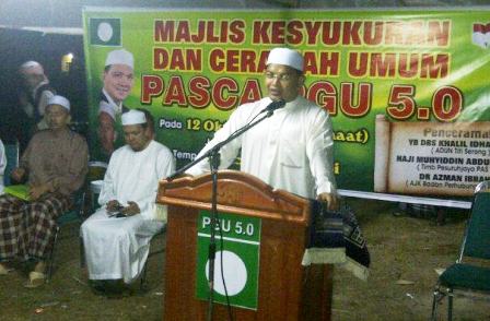 “Ada seorang tua datang berjumpa….. dia berkata…. dia tengok suasana orang (para petugaas) keluar (membantu) kerja, serupa dengan (suasana) masa kita (PAS) nak menang pada tahun 1999,”katanya.