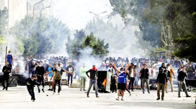 Polis rusuhan melepaskan gas pemedih mata kepada penunjuk perasaan di Universiti Al-Azhar dan seorang pegawai keselamatan berkata beberapa kereta polis dibakar dan bom petrol dilemparkan kepada pegawai polis.