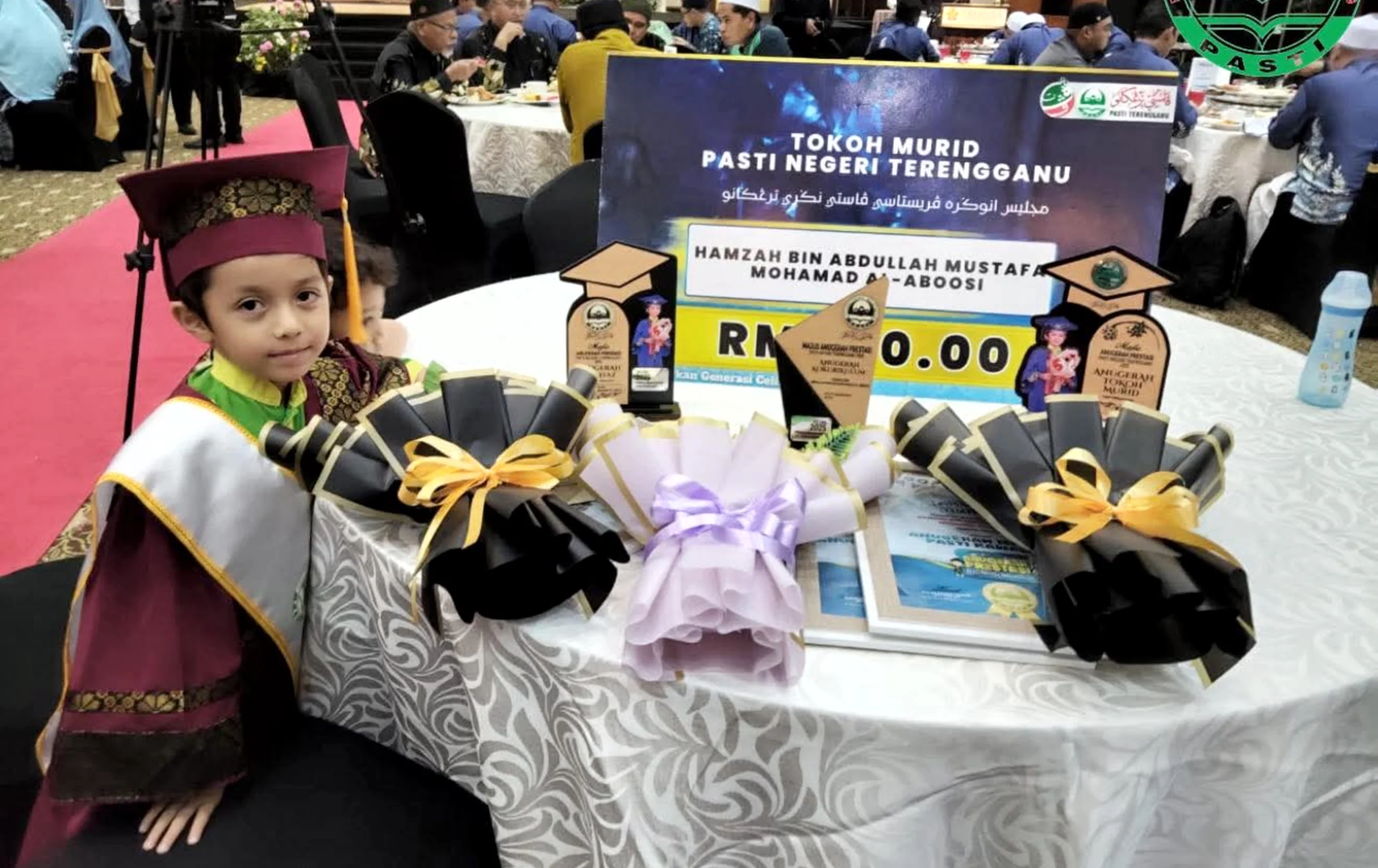 Dalam majlis sama, murid PASTI Al-Hidayah Bukit Cempaka, Setiu, Hamzah bin Abdullah Mustafa Mohamad Al-Aboosi, turut mengharumkan nama negeri apabila muncul Naib Johan Hafazan Lelaki peringkat Kebangsaan Alam Ria PASTI Malaysia 2025 serta menerima Anugerah Murid Mumtaz PASTI Negeri.