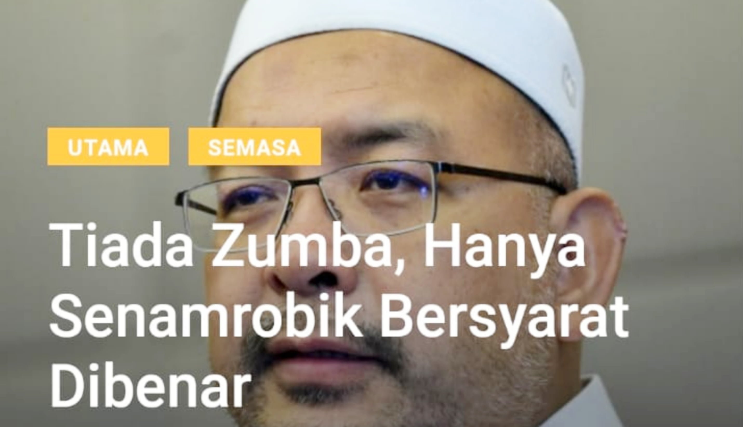 Berita yang saya sertakan ini, disiarkan beberapa hari lalu. Ia berkenaan jawapan dari pihak kerajaan selepas menyiasat dakwaan adanya aktiviti zumba di sekitar Taman Awam Bukit Besar. Sesudah menyiasat, didapati tiada aktiviti zumba seperti yang dikatakan, yang ada hanya senamrobik. Apa bezanya senamrobik dan zumba? Setahu saya, gerakan tarian yang agak agresif dalam zumba berbanding dengan senamrobik yang santai. Maka bagi wanita, kelas zumba perlu dilakukan di dalam ruang tertutup sesama mereka.