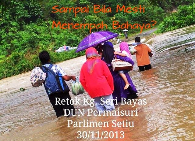 Walaupun menyedari penduduknya adalah Umno tulin, saya mengambil tanggungjawab bersama untuk membantu menyuarakan perkara ini agar pihak berwajib boleh memikirkan suatu langkah supaya bahaya yang diharungi penduduk saban tahun tidak lagi menjadi igauan kepada mereka.
