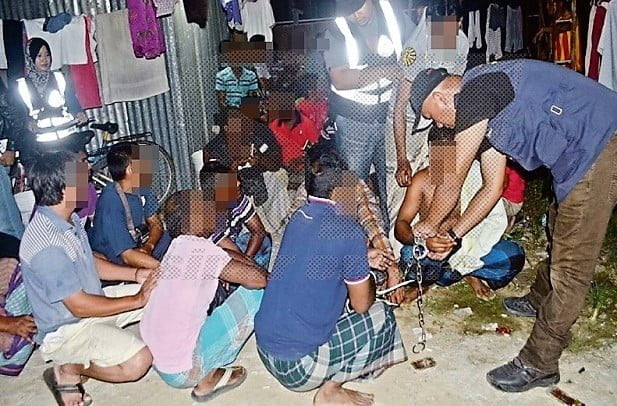 (Gambar atas : Segelintir pekerja warga asing diperiksa dalam serbuan Jabatan Imigresen Terengganu, di sekitar tapak pembinaan di Kuala Terengganu dan Kuala Nerus)