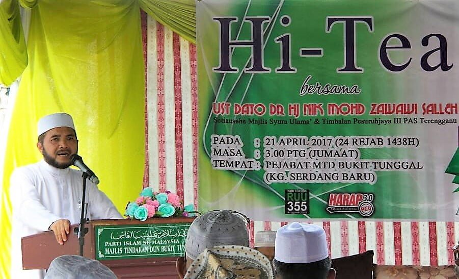 Beliau yang juga Timbalan Pesuruhjaya 3 PAS Terengganu berkata demikian ketika merasmikan Majlis Minum Petang (Hi-Tea) Muslimat Dewan Undangan Negeri (DUN) Bukit Tunggal pada Jumaat 21 April.