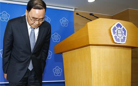 Prime Minister Chung Hong-won announced his resignation early on Sunday at an emergency news conference in Seoul, the capital.