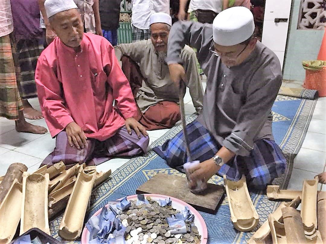 “Malam semalam saya bergurau dengan orang kampung sambil membelah tabung buloh dan mengeluarkan setalam duit syiling yang dibawa oleh ahli PAS cawangan,