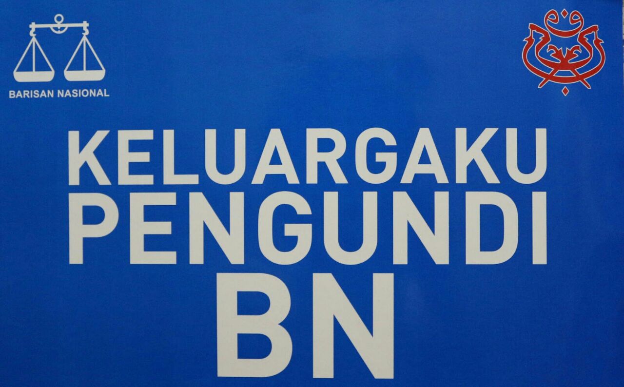 Banyak rumah di Kuala Kangsar didapati telah tampal di pintu-pintu rumah atau peti surat dengan pelekat kecil berwarna biru bergambar logo BN serta UMNO tertulis ‘KELUARGAKU PENGUNDI BN’.