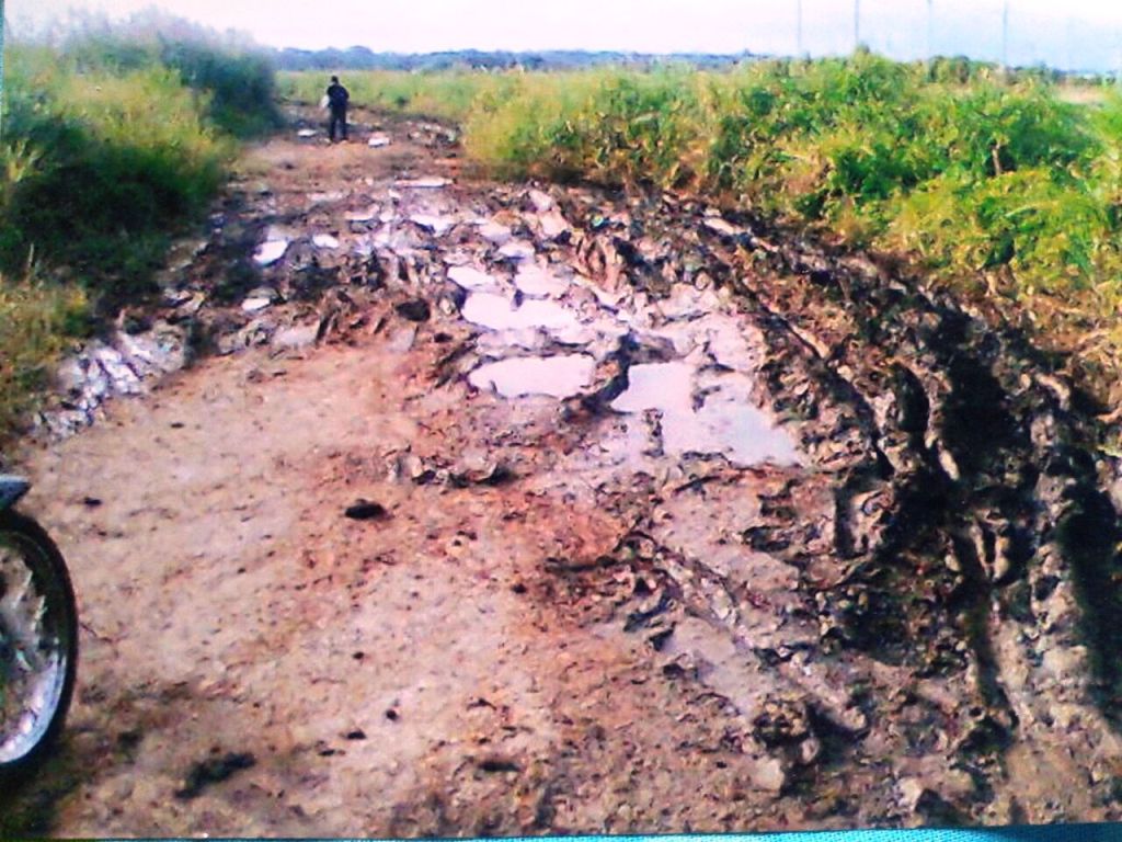 Ianya juga berlumpur dan berlopak disana sini sehingga menyukarkan pekebun membawa keluar hasil petanian mereka keluar.